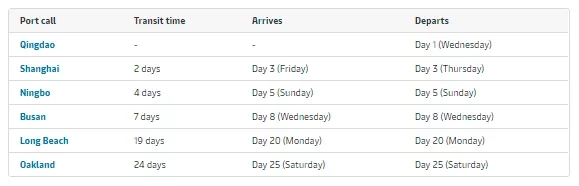 这一改变将从第28周(7月12日至18日)开始生效,旨在提高船期的可靠性。TP8/Orient服务第一次取消挂靠奥克兰港是10,600TEU的“Cap San Juan”,航次128N,预计8月7日到达奥克兰,该船将按如下顺序挂靠:青岛-上海-宁波-釜山-长滩。