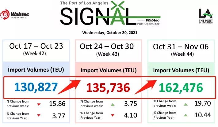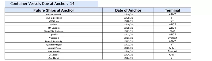 根据南加州海事交易所(Marine Exchange of Southern California)的数据,周一在洛杉矶和长滩港口及其附近有记录的船舶总数为157艘,与9月份创下的纪录持平。等待靠岸和卸货的船只数量则达到100艘,创下新的历史纪录。
