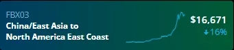 亚洲至美东运价指数已经从9月10日每40英尺集装箱22173美元的高点价格,下降到每40英尺集装箱16671美元。与前一期11月5日19895美元相比下降3224美元,跌幅达16.2%,与9月10日高点相比,下跌近5498美元,跌幅达到24.79%。