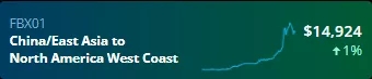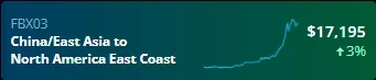 从亚洲到北欧,Drewry的世界集装箱指数(WCI)持平,为每40英尺13564美元,波罗的海货运指数(FBX)上涨1%,至14345美元,而Xeneta最新指数(XSI-C)上涨3%,至每40英尺14443美元。