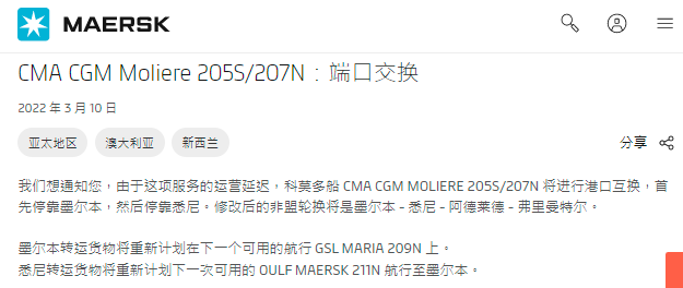 马士基警告:严重延误!调整11艘船航行计划;受战争影响货物,免存储费及额外海运费