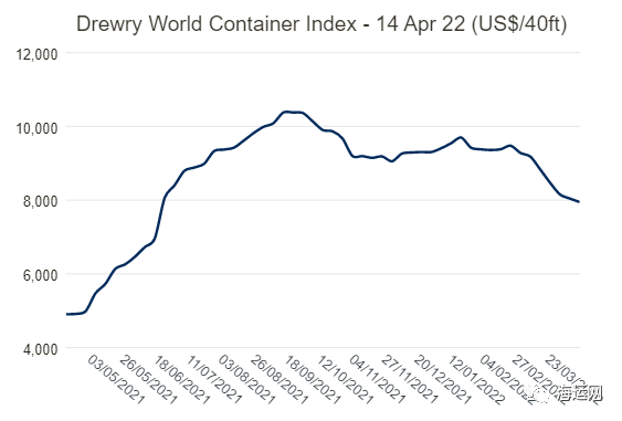 德鲁里指数显示,自2022年2月24日以来,连续第7周运价下跌。