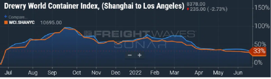 但即使是那些库存很高的公司,展望下半年的集装箱进口量,仍有假日商品的进口旺季,高库存并不会影响运输进口。