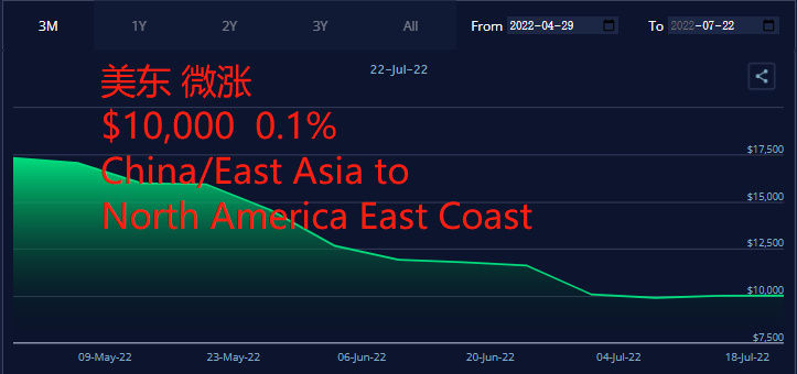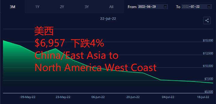 FBX:最新一期波罗的海货运指数(Freightos Baltic Index, FBX)显示,亚洲至美西的运价下跌4%至6957美元/FEU。亚洲至美东的运价微涨0.1%至10000美元/FEU。