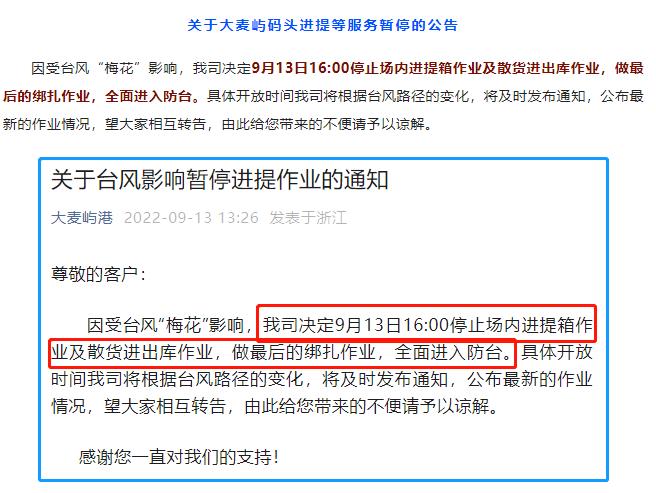 目前,“梅花”正逐步靠近我国浙江沿海地区,上海港和宁波舟山港多个码头,已宣布暂停进提箱作业。