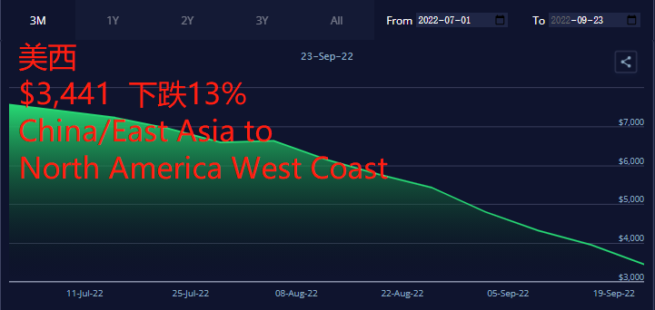 ●远东到美西下跌至2684美元/FEU,跌幅12.0%;
