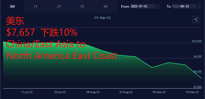 ●远东到美东下跌至6538美元/FEU,跌幅8.9%;
