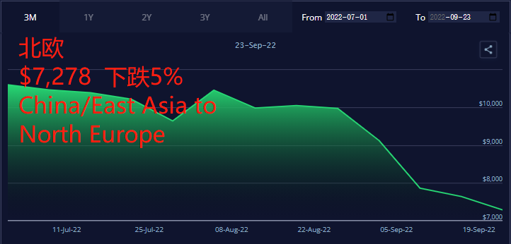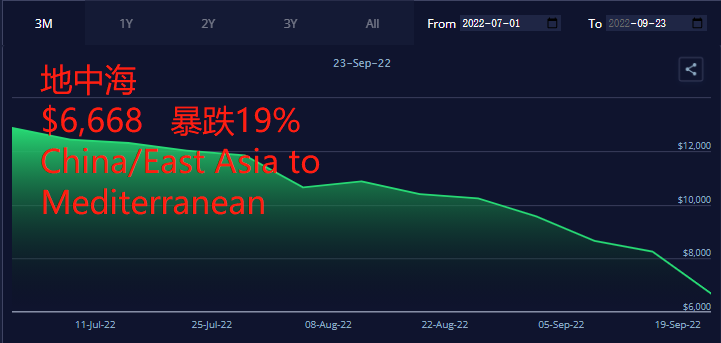 ●远东到地中海运价为3249美元/TEU,跌幅14%。