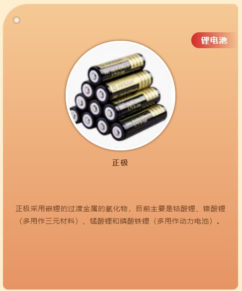 以钴酸锂电池为例,正极为钴酸锂(LiCoO2),负极为石墨碳(C6),充电时锂离子(Li+)从正极脱嵌,经隔膜到负极后嵌入碳分子中;放电时反之。