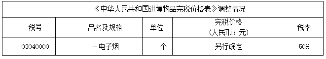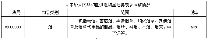 2.《中华人民共和国进境物品归类表》和《中华人民共和国进境物品完税价格表》增加电子烟相关内容。