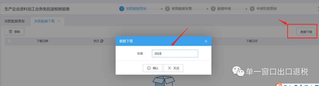 点击数据下载后,按年度依次分别下载最近三年的加贸反馈。