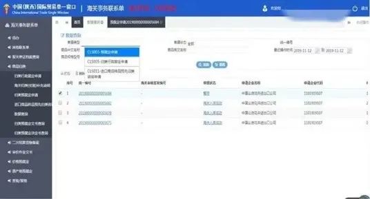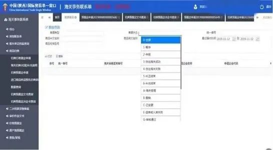 用户在“商品归类”中选择“数据查询”后,需要录入“单据类型”“最近操作日期”和“单据状态”来进行查询操作(上述三项查询条件为必填项)。在右侧查询界面的“业务类型”中选择“预裁定申请”并输入查询条件,点击“查询”。