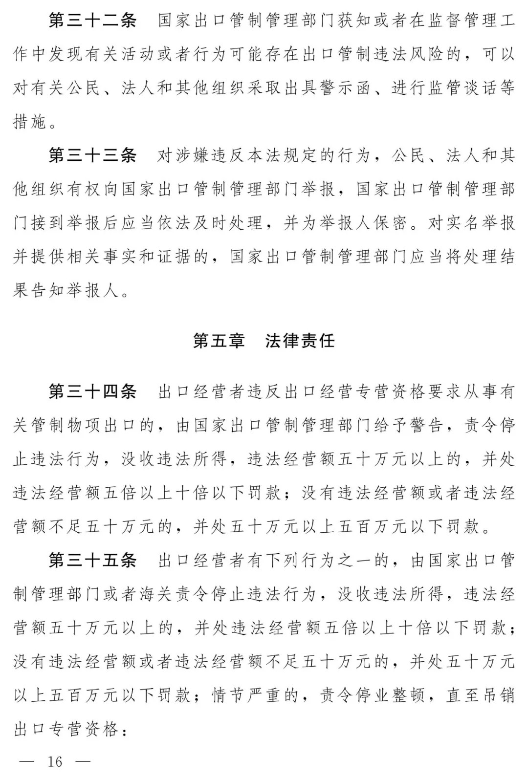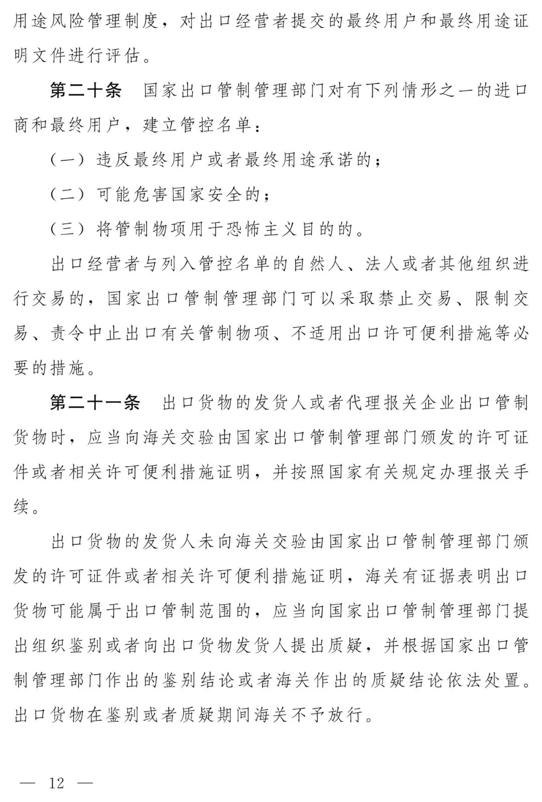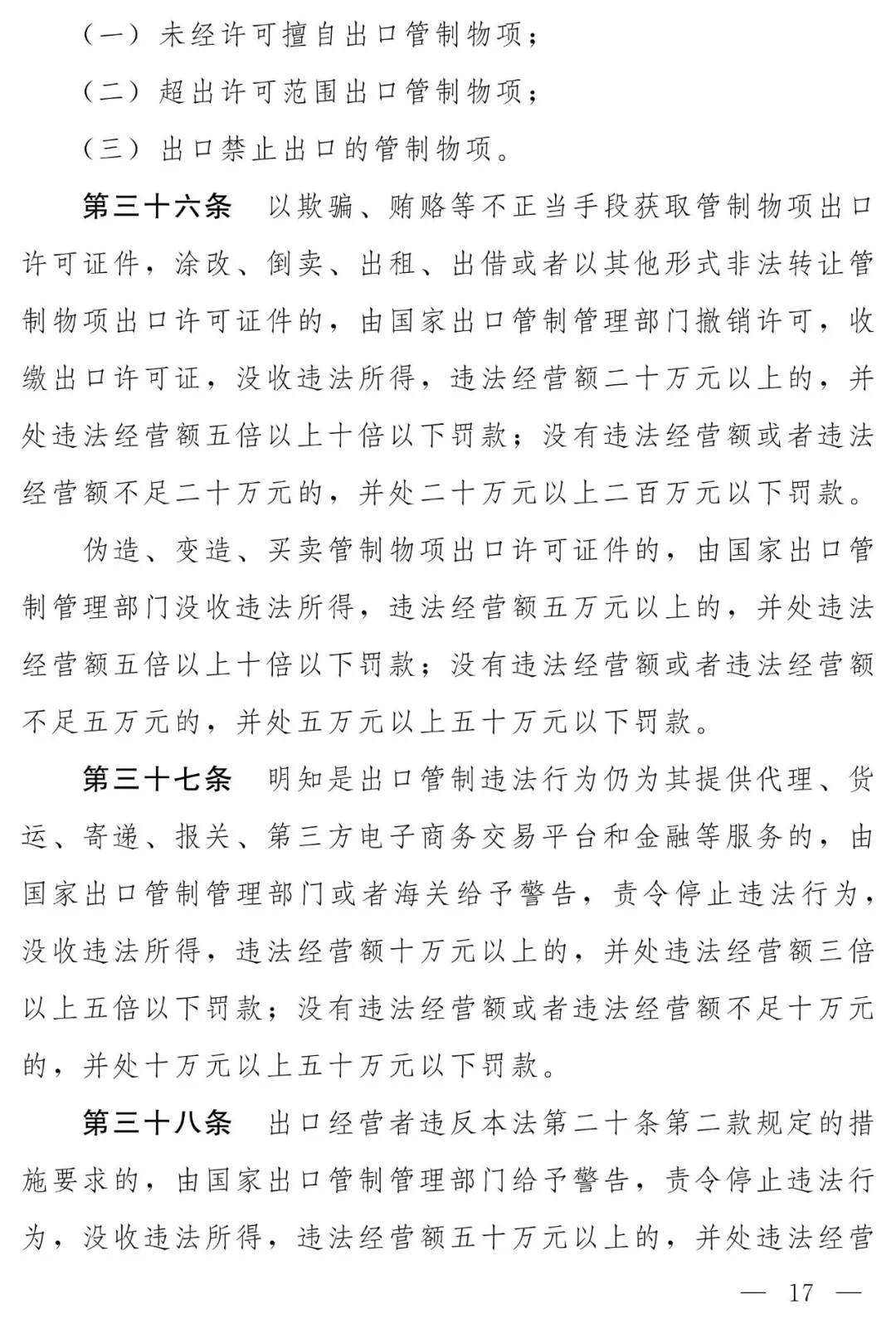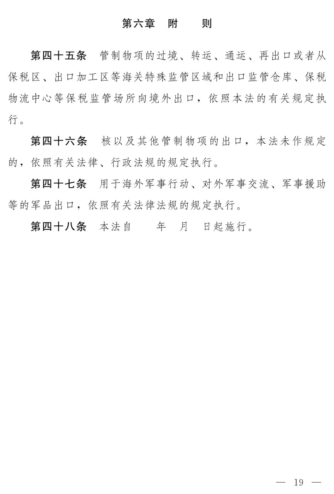 在适用主体上,草案涵盖出口行为所涉各类主体,包括中国和外国的自然人、法人和其他组织,确保出口管制“见物又见人”。在管制环节上,草案既适用于出口,也适用于过境、转运、通运、再出口等各个相关环节,确保不留空白和死角。