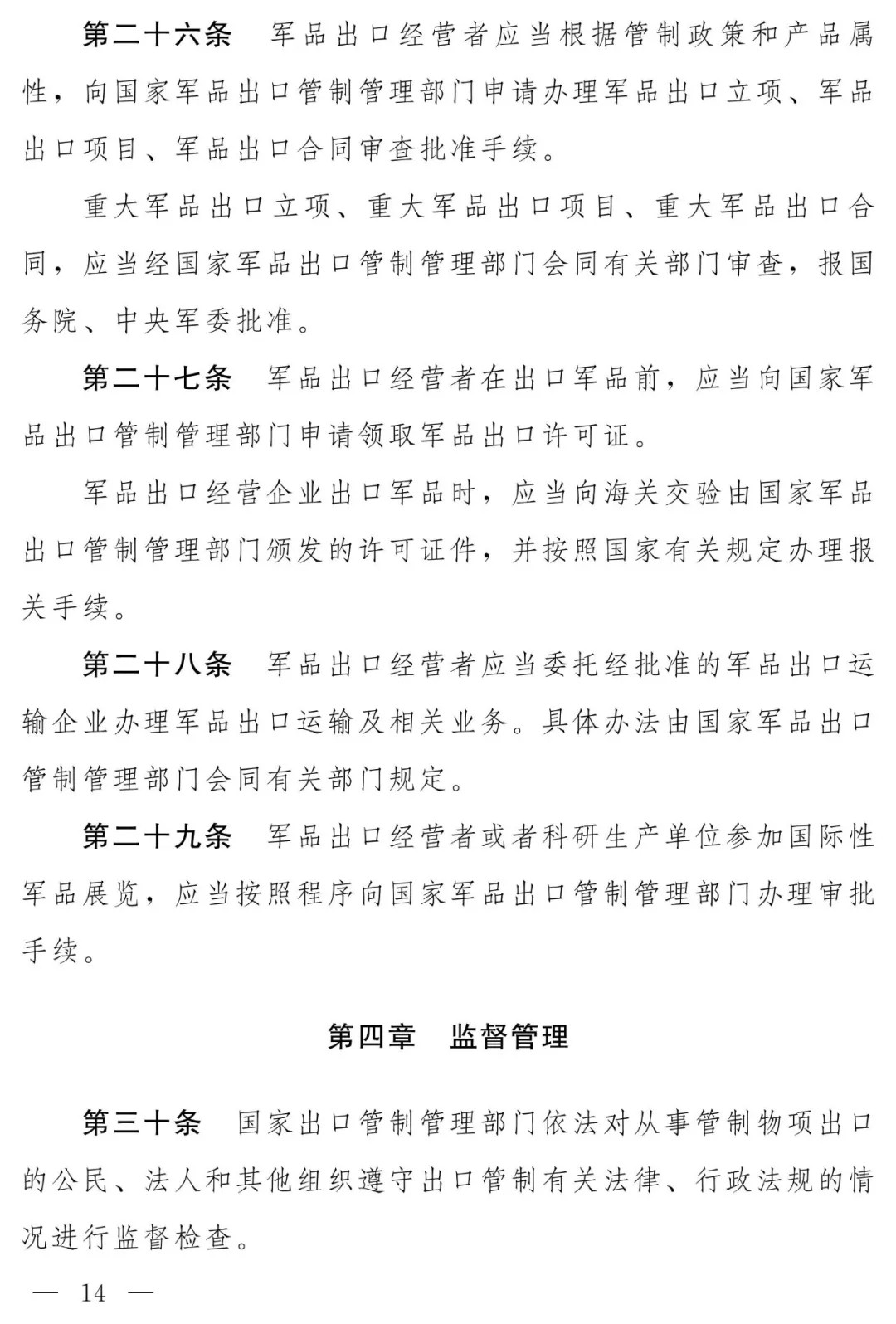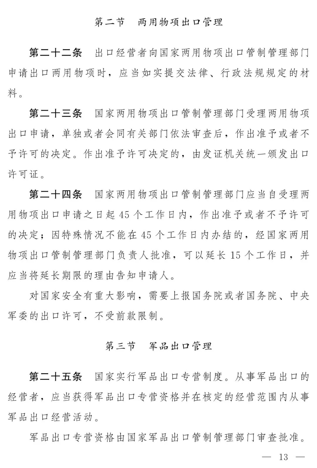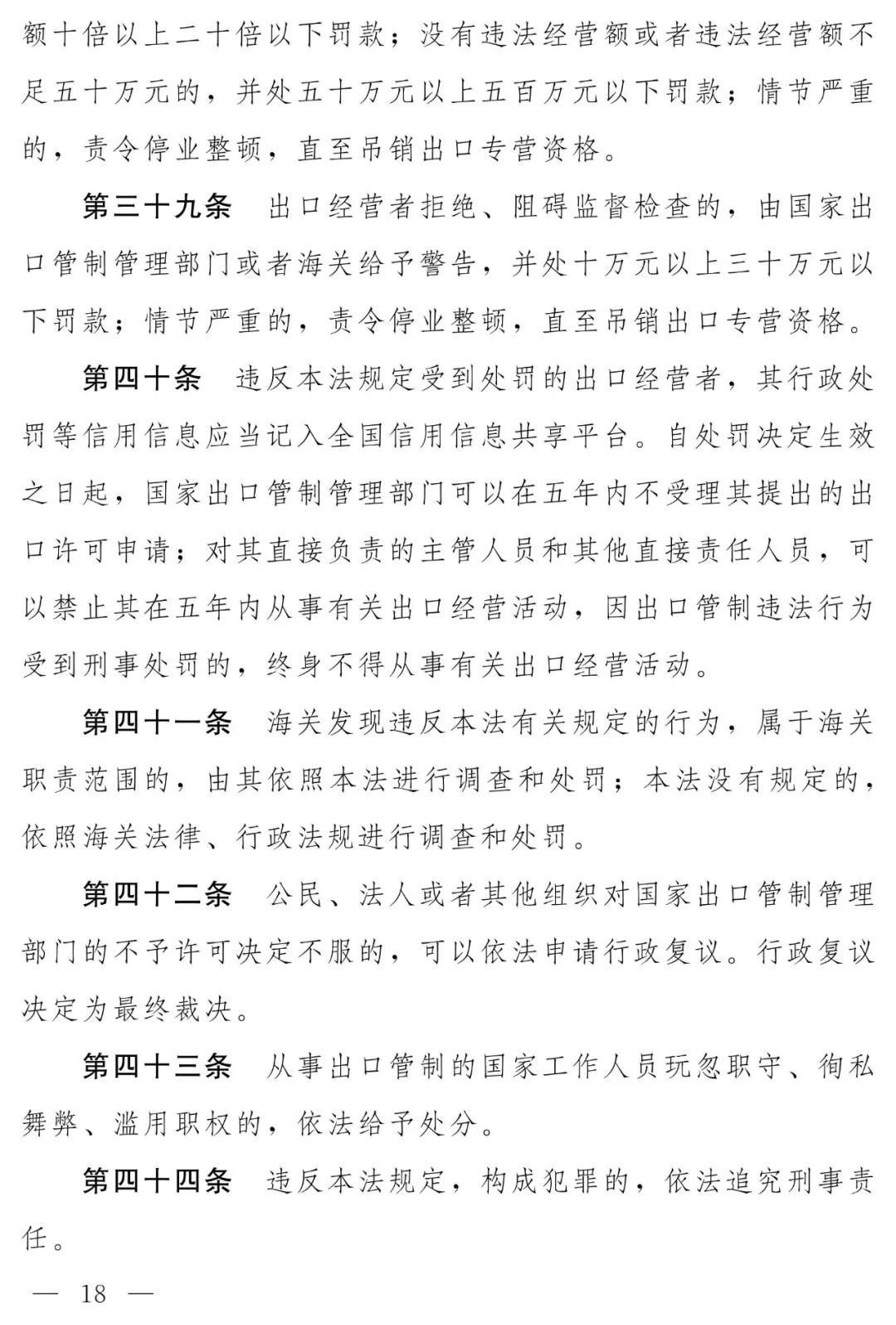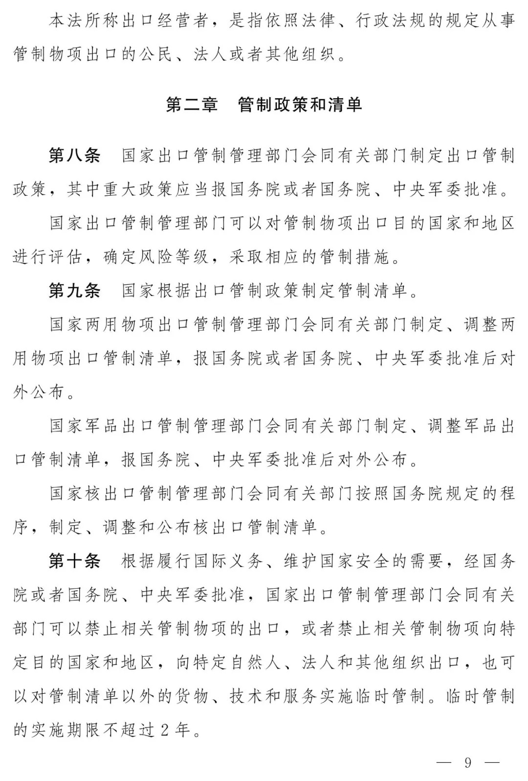 在适用主体上,草案涵盖出口行为所涉各类主体,包括中国和外国的自然人、法人和其他组织,确保出口管制“见物又见人”。在管制环节上,草案既适用于出口,也适用于过境、转运、通运、再出口等各个相关环节,确保不留空白和死角。