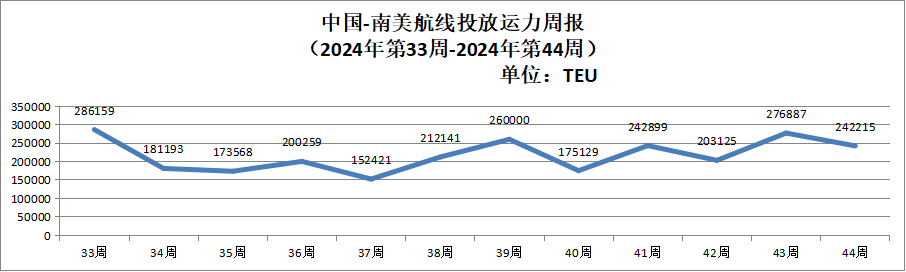 2024年第33周-第44周《中国主要外贸航线运力投放周报》正式发布,包括美西航线、美东航线、南美航线、欧洲航线、地中海航线、日韩航线、东南亚航线、南非航线等13条全球主要外贸航线。
