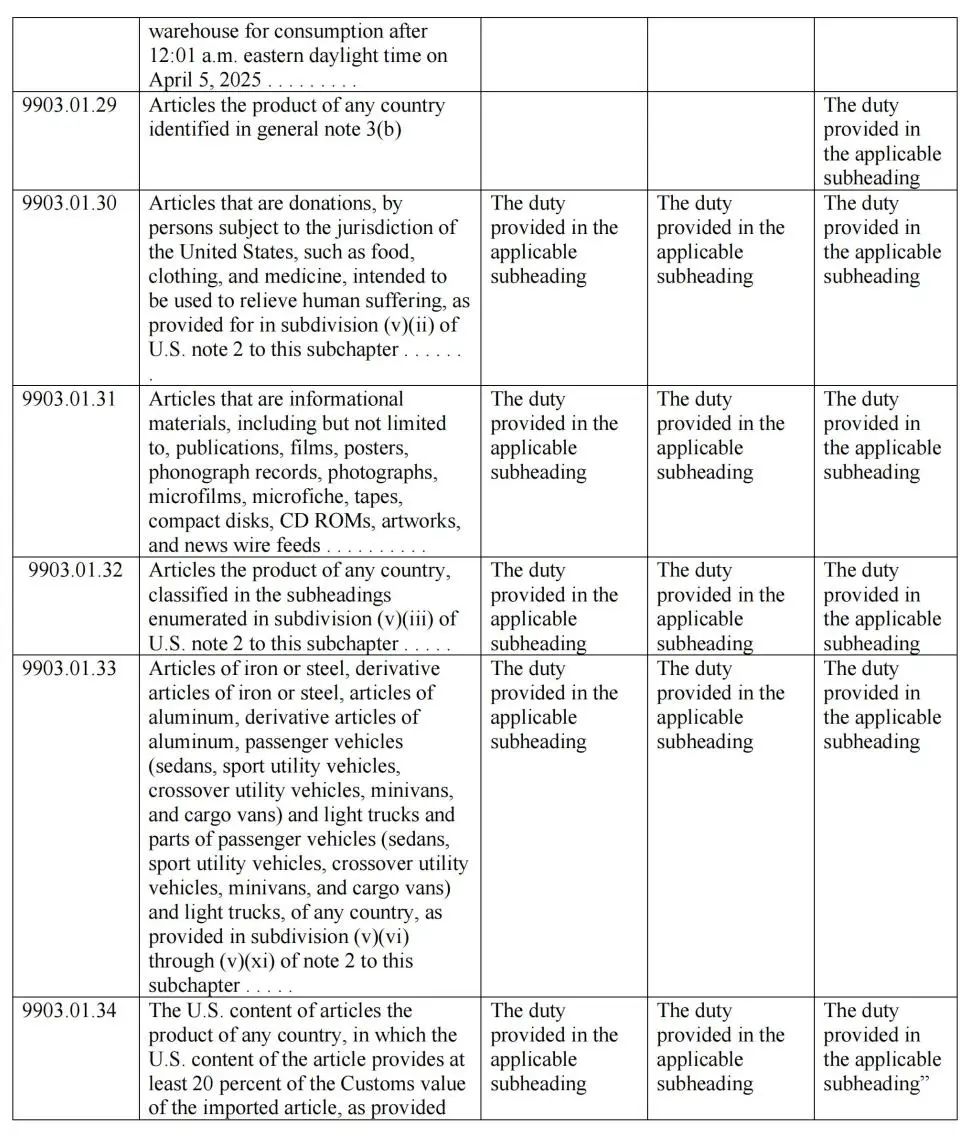 以上为部分关税豁免清单截图,豁免详情请查看白宫发布的附件:http://whitehouse.gov/wp-content/uploads/2025/04/Annex-II.pdf