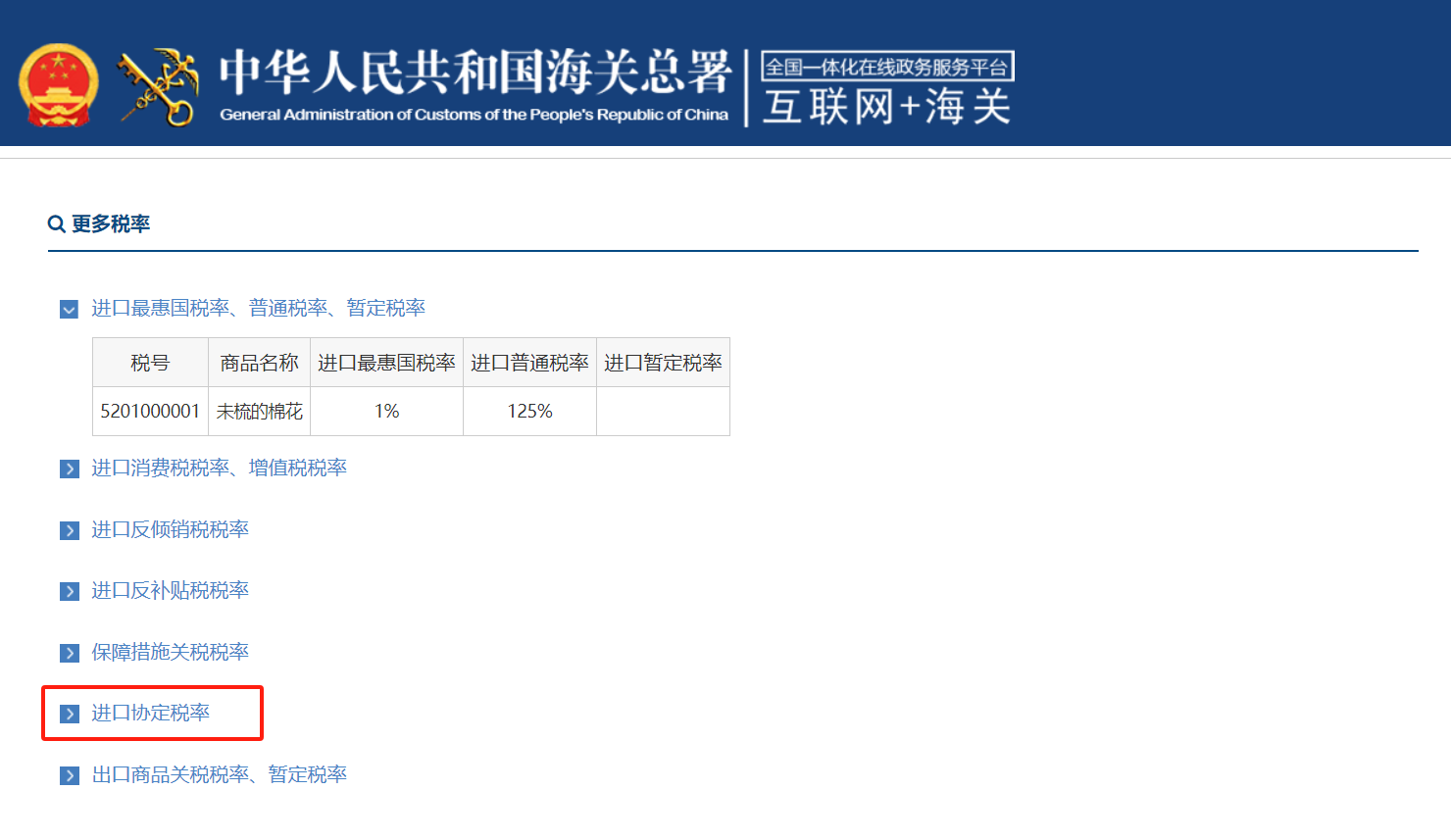 二、中国商务部-外贸实务查询服务(进出口商品税率查询)