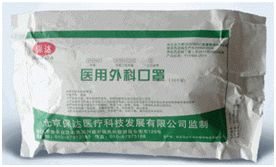 2.医用外科口罩,符合医药行业标准YY0469-2011《医用外科口罩技术要求》相关要求,适用于临床医务人员在有创操作等过程中所佩戴的一次性口罩。用于覆盖住使用者的口、鼻及下颚,为防止病原体微生物,体液、颗粒物等直接透过提供物理保障。该类口罩一般对非油性颗粒的过滤效率应达到30%以上,对细菌的过滤效率要达到95%以上,此外,对合成血液穿透性的要求,一般会将口罩分为三层:内部吸水层,中间过滤层,外面防水层,每一层都有特别的作用。