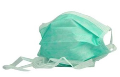 3.普通医用口罩,符合相关注册产品标准(YZB)或医药行业推荐性标准YY/T 0969-2013《一次性使用医用口罩》相关要求,适用于覆盖使用者的口、鼻及下颚,用于普通医疗环境中佩戴,阻隔口腔和鼻腔呼出或喷出污染物的一次性口罩,一般无法保证对病原微生物、粉尘的过滤性,在医院中一般用于常规护理,用于阻隔医护人员与患者之间的日常交叉感染。