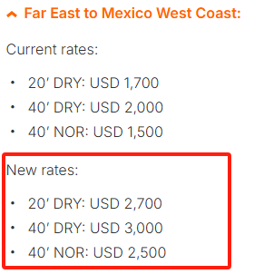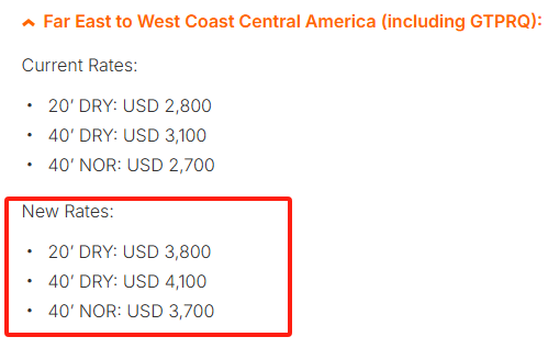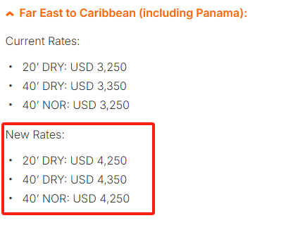 上调远东至南美西海岸、墨西哥、中美洲和加勒比地区GRI