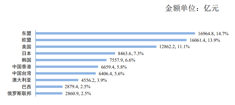 前 5 个月,中国的前四大贸易伙伴依次是东盟、欧盟、美国和日本,分别占同期进出口总额的 14.7%、13.9%、11.1%和 7.3%。
