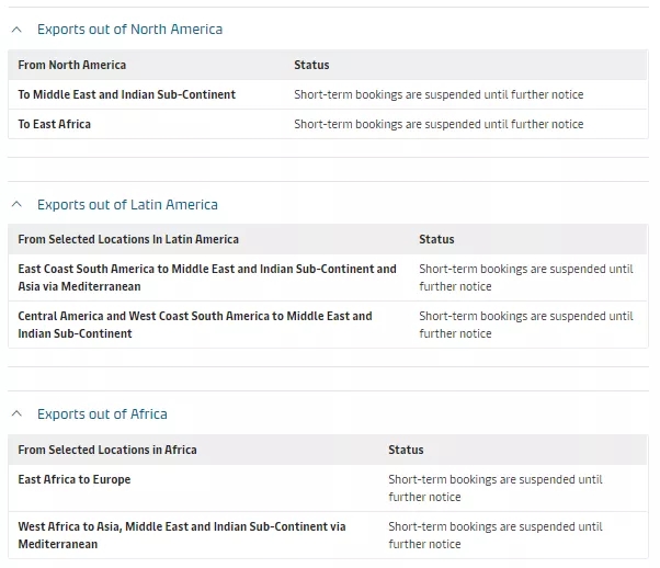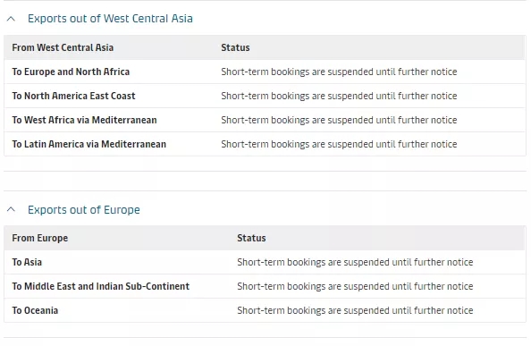 鉴于由此带来的连锁反应,马士基决定暂停通过Spot订舱平台的短期在线订舱,同时暂停本周和近期部分地区的短期合同订舱。