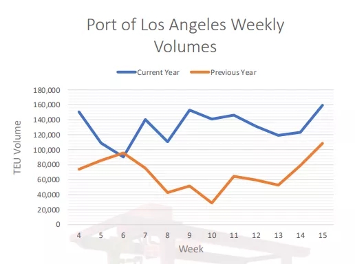 相比2月高峰期,洛杉矶和长滩已有所缓解。不过,美国由于斋月和复活节需求激增,港口都出现了到货高峰期,而美线海运现在情况严重紧张,舱位紧张排到4月底。据悉,美森快船现在一柜难求,已超去年年底最高峰时期;以星快船的舱位也因美森没柜而变得异常紧张;普货的船期变化过大,目的港迟迟无法靠泊作业,港口排队等待泊位的船舶没有明显减少,船舶等待时间反而有所加长,达到7.9天。第15周又迎来一波货物到港高峰期。